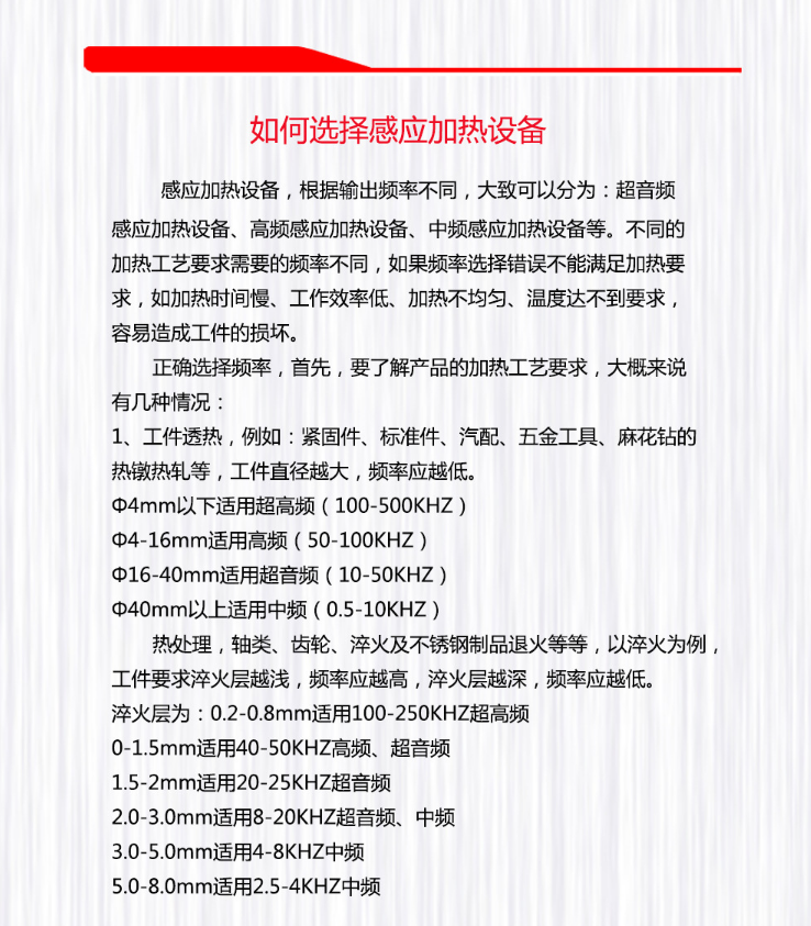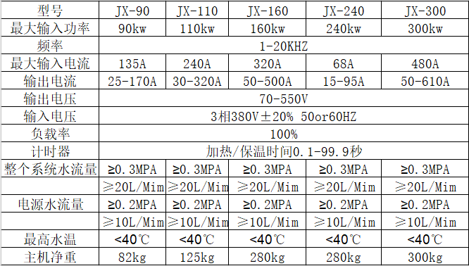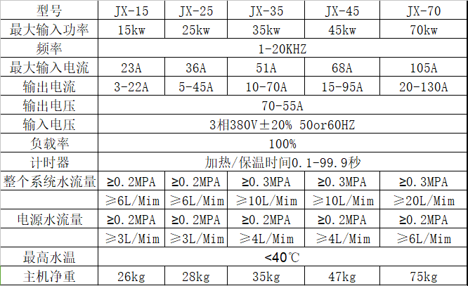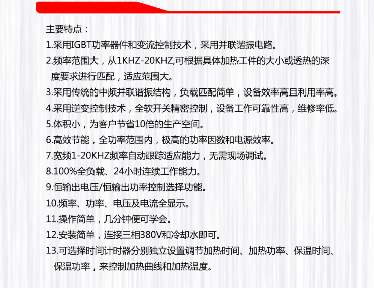 中频感应加热技术参数: